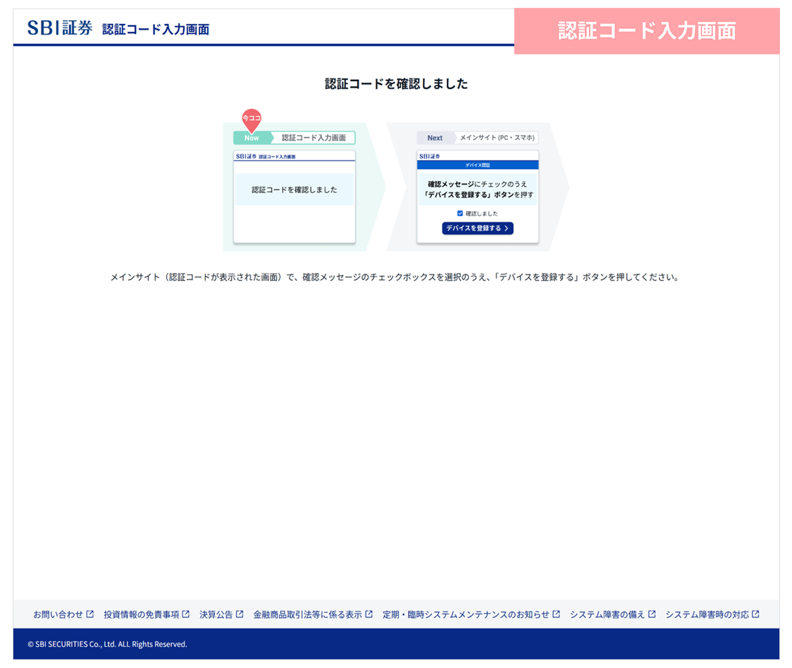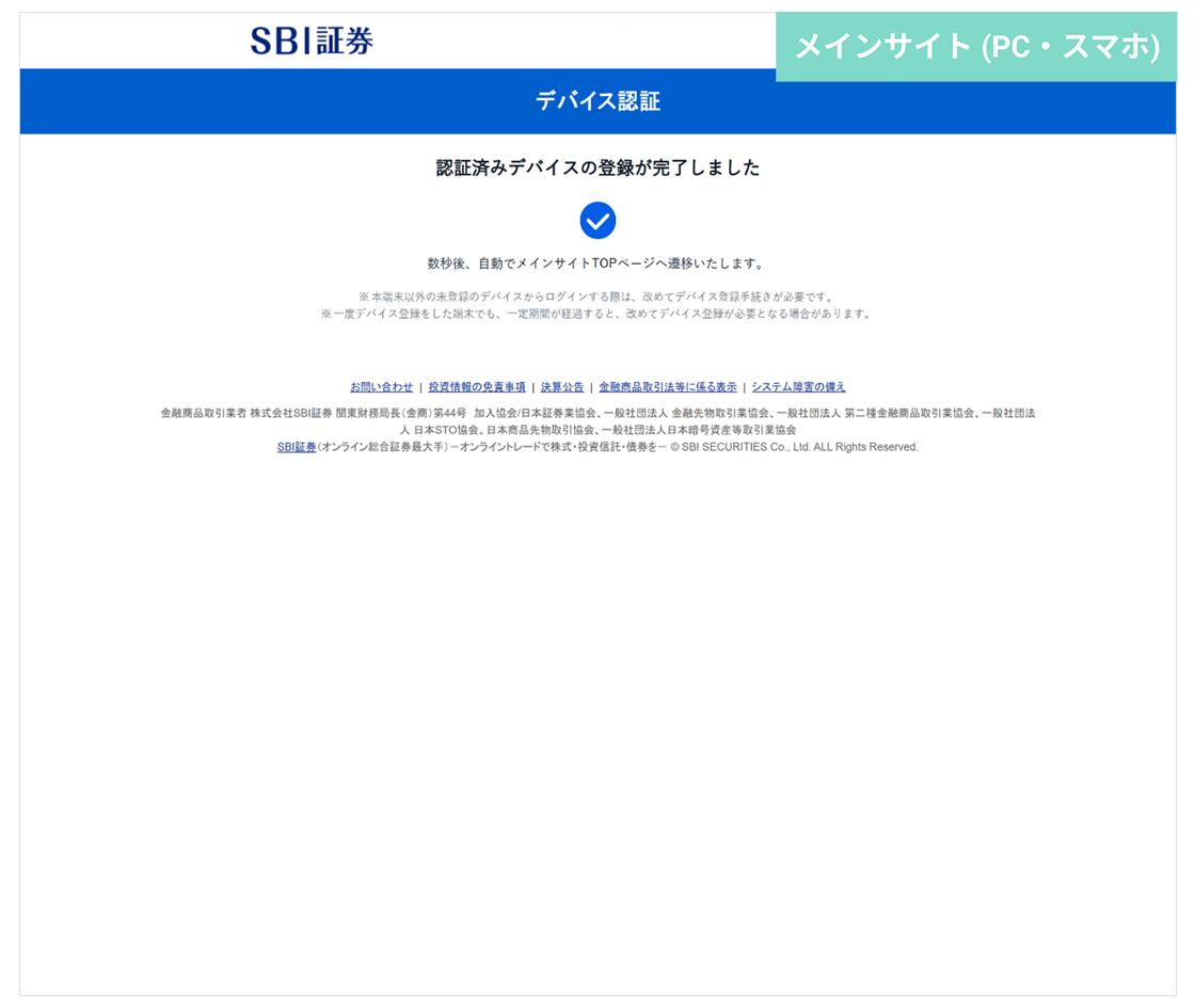 Step デバイス認証画面(メインサイト画面)に戻りデバイスの認証登録を完了する